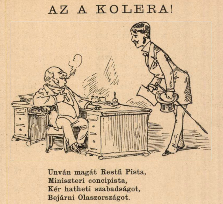 Ballad of the Hungarian ministerial aide who begs leave to visit Italy, suffers the indignities of quarantine and spritzes of carbolic acid, then continues to the Swiss border to experience new tortures.