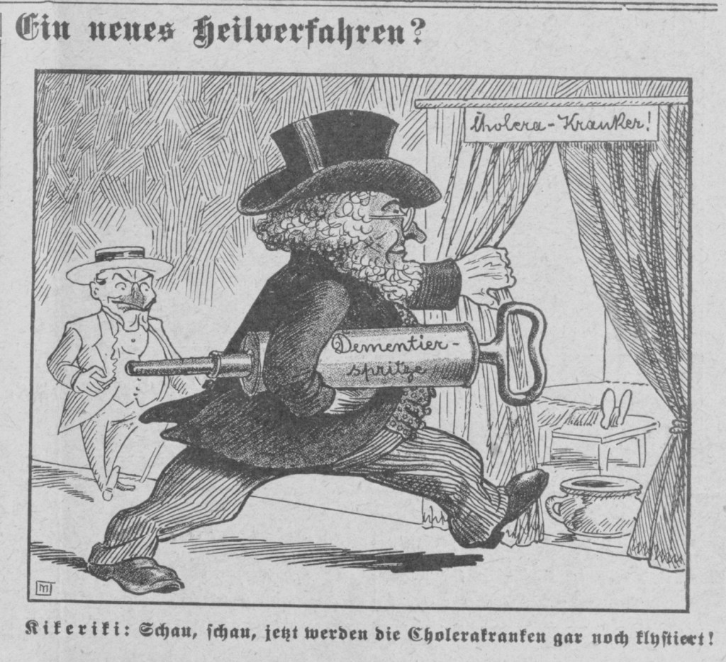 Kikeriki: “Look, look, now the cholera patients won’t be purged at all!”