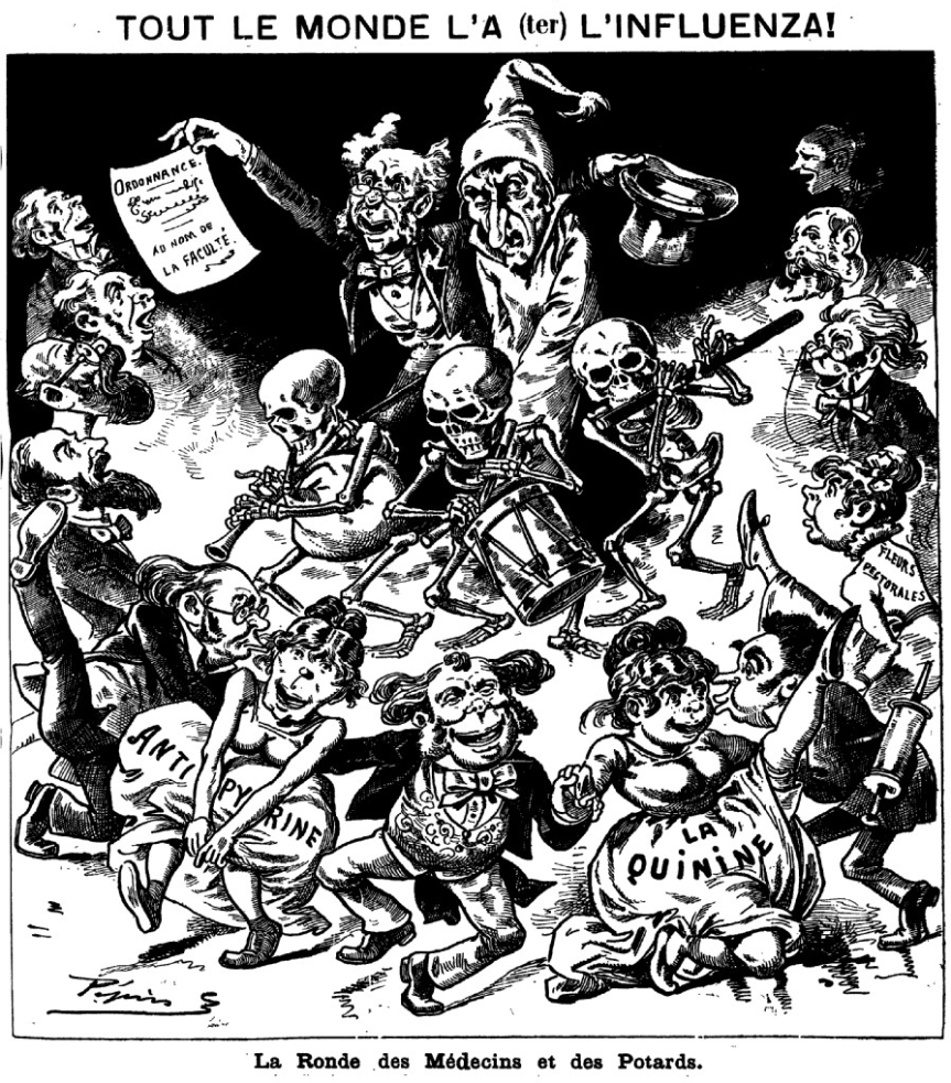 In a sense, all of the cartoons on this site participate in the carnivalesque, invoking epidemic themes to destabilize received views, most often in Terry Eagleton’s notion of licensed transgression, more rarely as utopian antidotes. This section will only single out images that more explicitly dance in the face of disease.
