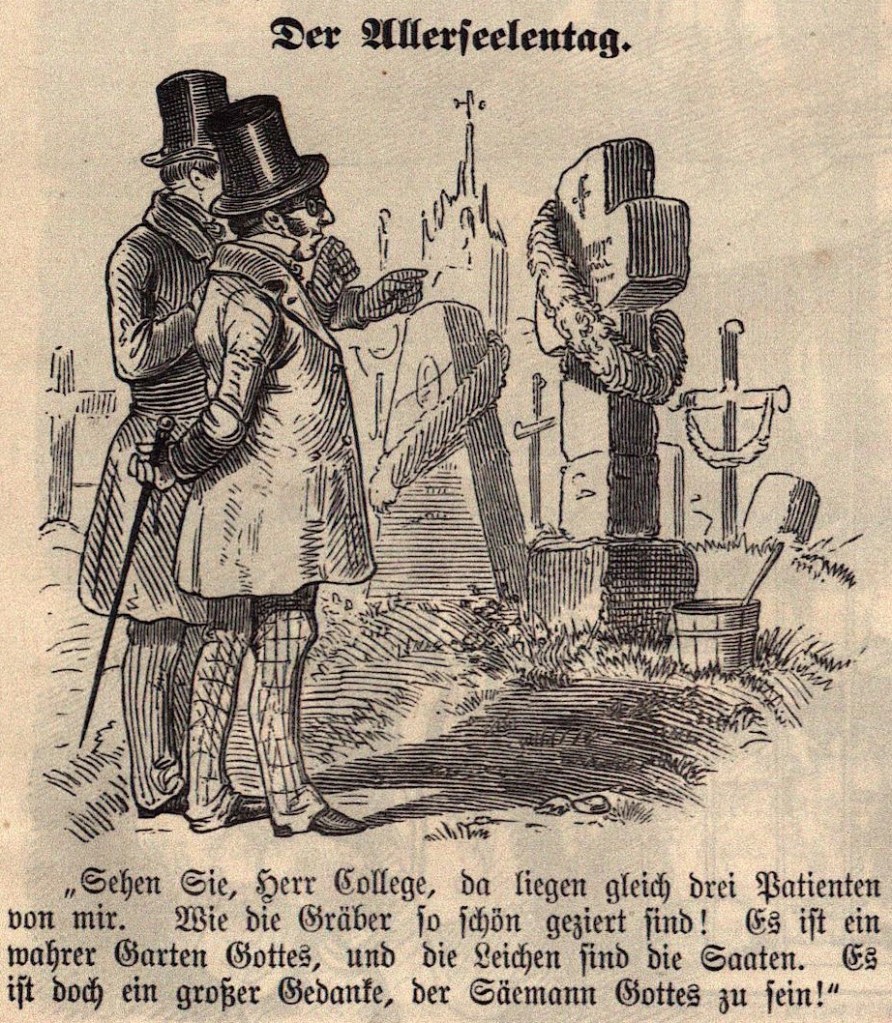 “You see, dear colleague, over there lie three patients of mine. How nicely adorned the graves are! It is truly a divine garden, and the bodies are the seeds. It’s a grand thought, to be the divine sower!”