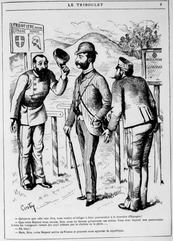 “Your majesty will pardon us, Sire, we are only carrying out your orders. You have imposed a quarantine on all travelers coming from countries infested by cholera or plague…”