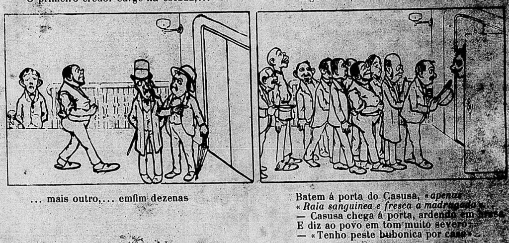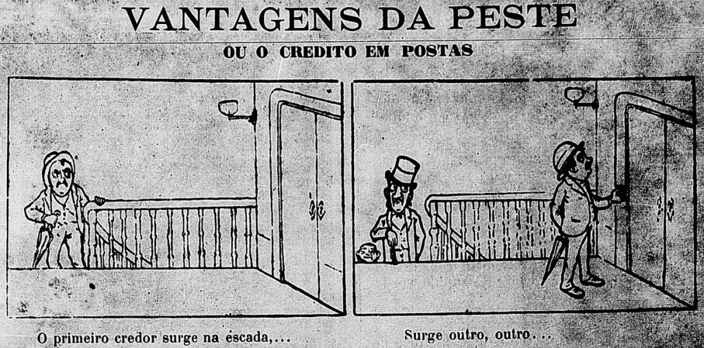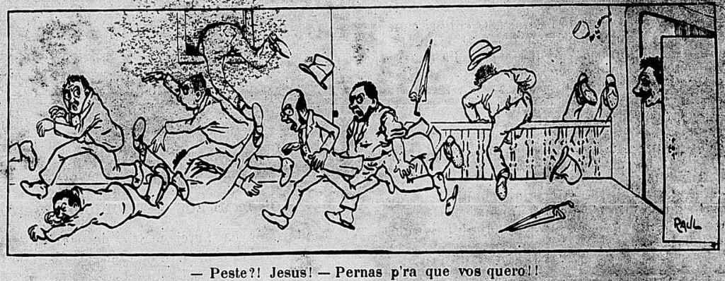 (La Revista da semana, Rio de Janeiro, 1900) (While I can’t capture the idiom, the point of the cartoon is clear. There are similar flu-related cartoons in Czech and Hungarian versions.)