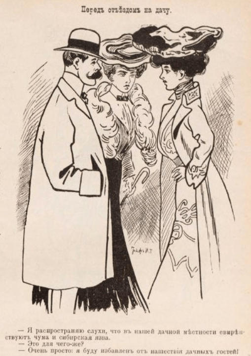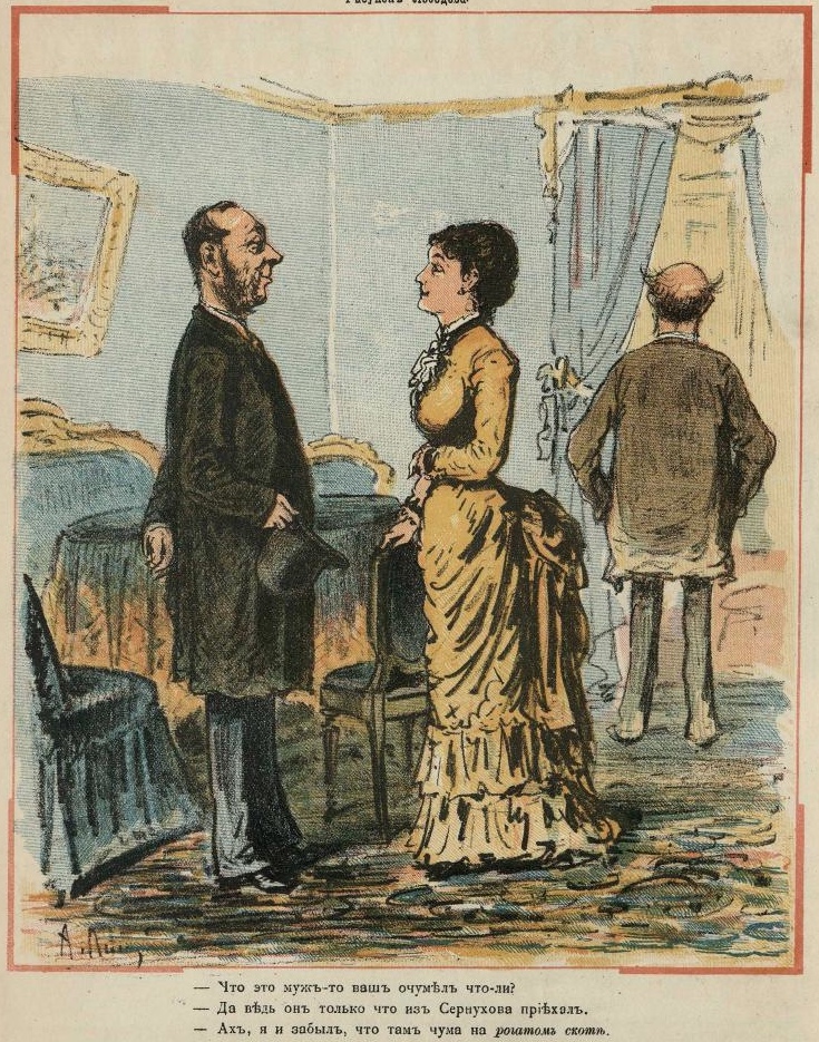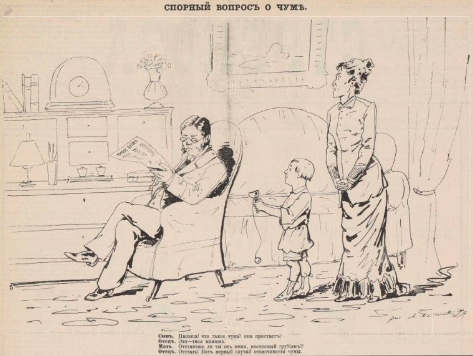 (Notwithstanding the flatfooted sexism of this cartoon, there was a recurrence of actual plague in Russia at this time.)
