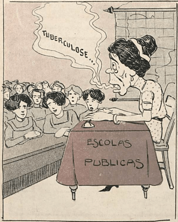 (Detail from “Salad of the Week”) “Discussions and opinions on the hygienic inspection of schools continue; but, like all the serious assumptions of this country, they never go beyond the theoretical and verbose terrain, and it is likely that this will also be seen now… How many adjuncts, teachers and students do not drag an existence already reached by tuberculosis, living in a criminal promiscuity!… Why not take an energetic decision to avoid a greater harm?”