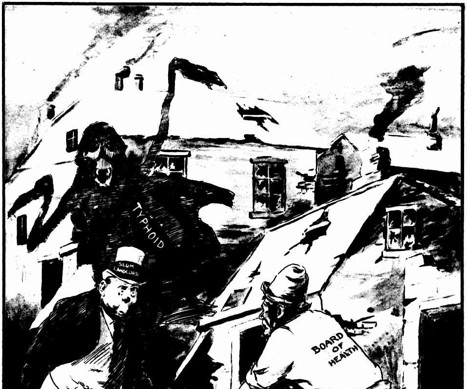 Pressure, typhoid fever, and jobbery as members of the school board. I haven’t looked into the politics referenced here, but I include this image because of its seeming resonances with our own current imperatives, trying to reconcile in-person instruction with the real-world behaviors of students in epidemic conditions.