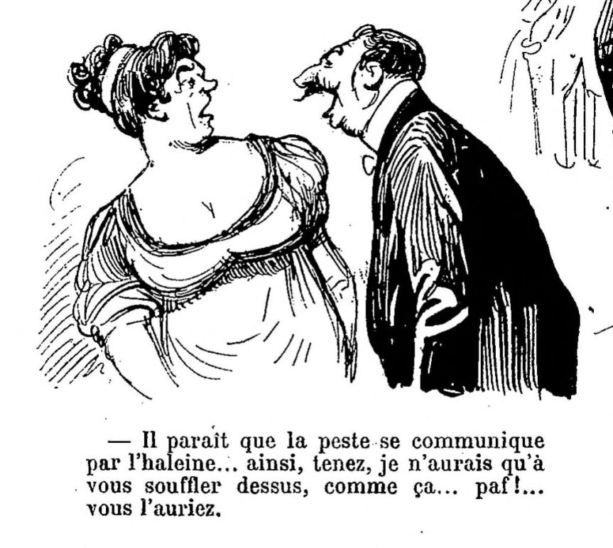 Epidemic disease and its frightening symptoms often give rise to feelings of disgust and revulsion. Hygiene can function here as a set of social norms susceptible to willful or involuntary violation by the disease-ridden figure. Even cartoons can play on these responses for their own ends.