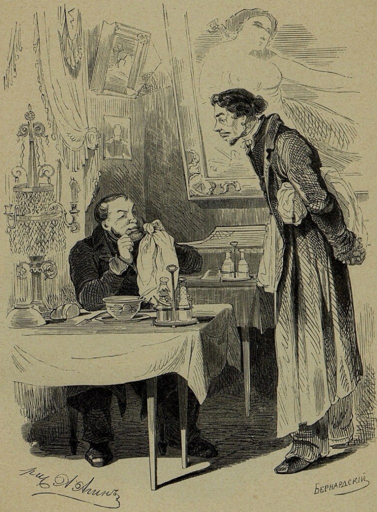 (Illiustratsiia, St. Petersburg, 1846; reprinted in A. A. Agin (artist) and E. E. Bernadskii (engraver), 100 Drawings for Gogol’s Dead Souls, 1892)