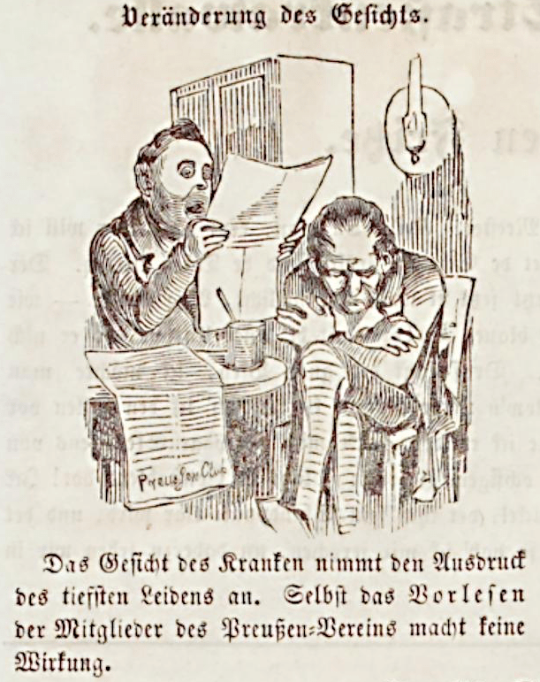 Change of face: The face of the patient assumes an expression of the most profound suffering. Even lectures of members of the Prussian Union have no effect.