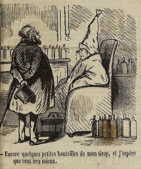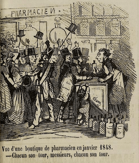 View of a pharmacist shop in January 1848. “Each in turn, gentlemen, each in turn.”