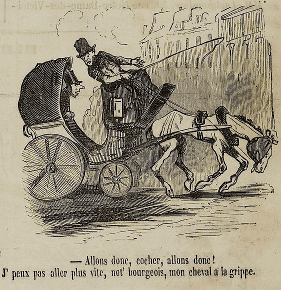 “Come on, coachman, come on!” “I can’t go any faster, sir, my horse has the flu.”