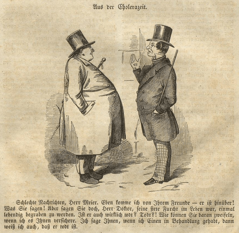 Mr. Meier: “What are you saying! But tell me, Doctor, his constant fear in life was that he would someday be buried alive. Is he really dead?”