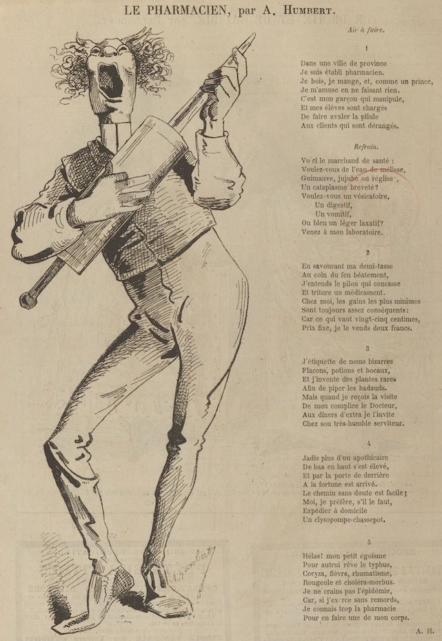 Continuing our clystère theme, a few verses from Le Monde comique (Paris, 1869).