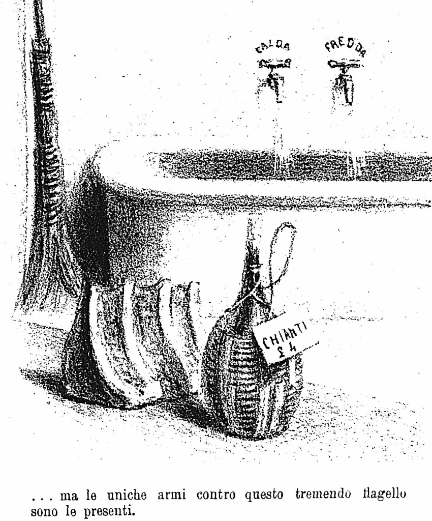 You know what, Mr. Housemaster: if the lord of the manor wants to have cleanliness in the house for the sake of cholera, then let’s wash out your filthy mouth first. (Humoristické listy, Prague, 1883)
