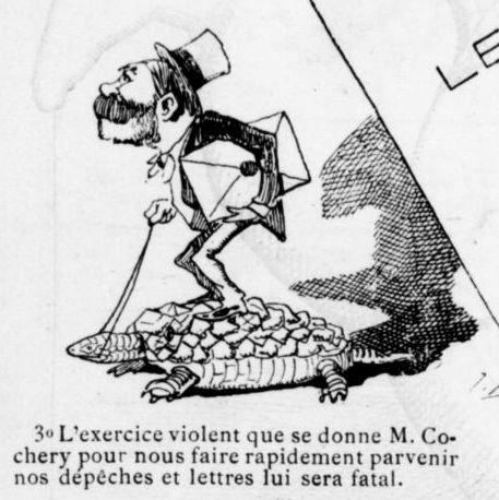 The violent exertion that Mr. Cochery is giving himself to quickly send us our despatches and letters will be fatal to him. [Cochery was Minister of Posts and Telegraphs.]