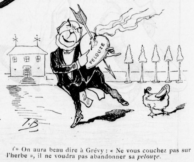 We can say to Grévy [president of the Republic]: “Don’t lie down on the grass, he won’t want to give up his pelouze.” [Grévy was rumored to be having an affair with the wealthy socialite Marguerite Wilson-Pelouze.]