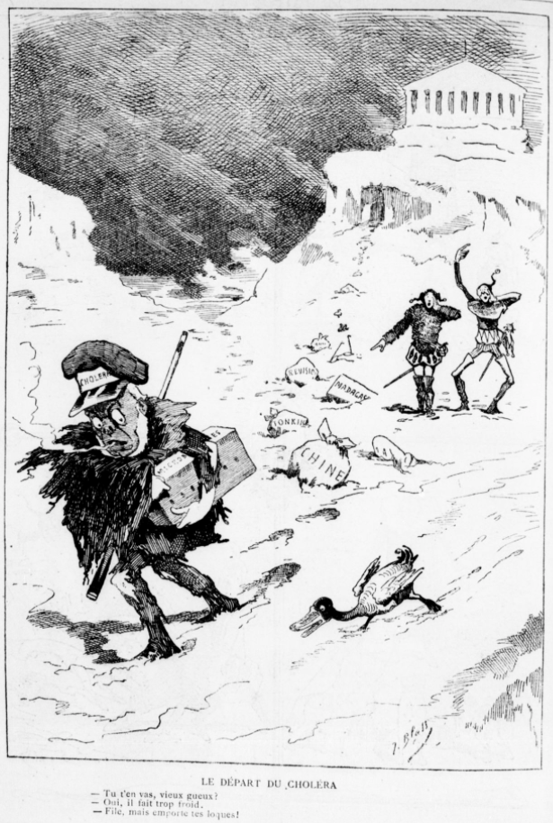 If France has been plagued by cholera for more than a month in some of its provinces, Italy has been totally so since the coming to power of this terrible Ministry. (Lo Spirito folletto, 1884)