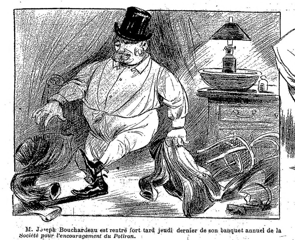 Mr. Joseph Bouchardeau returned very late last Thursday from his annual banquet at the Society for the Encouragement of the Pumpkin.