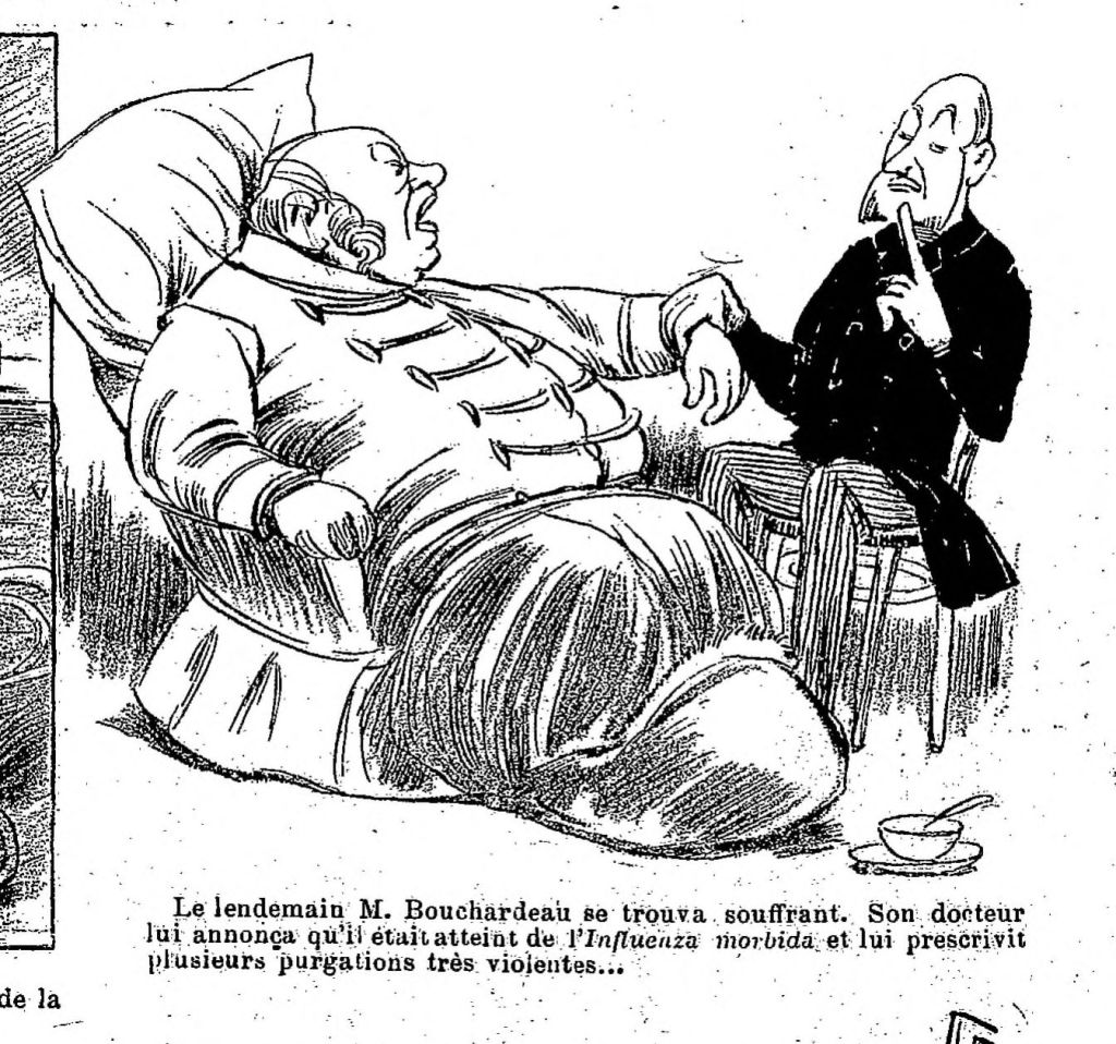 The next day Mr. Bouchardeau found himself ill. His doctor told him that he had morbid influenza and prescribed several very violent purgations…