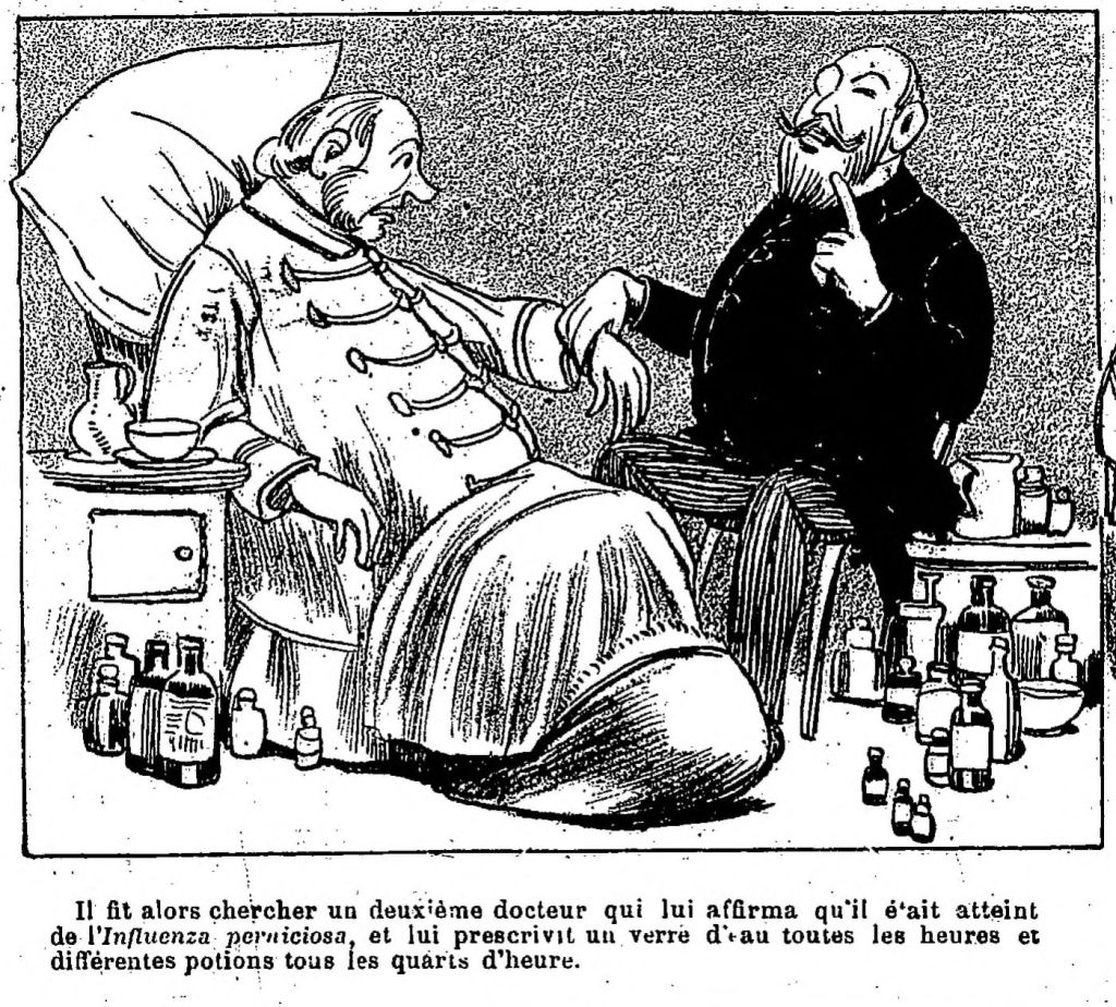 He then sent for a second doctor who told him that he had pernicious influenza and prescribed him a glass of water every hour and different potions every quarter of an hour.