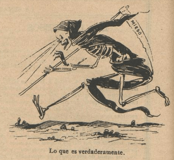 Death: “Well, stop it, silly German! You’re about to devour each other if you use Robert Koch’s concoction. Anyway, whatever I lost in my tuberculosis tariff, I will get hold of through the misery of the Russian world war and overpopulation!” (A reference to the Russian repudiation of alliances with Germany and Austro-Hungary in favor of France, its failed politics in the Balkans, and renewed tensions with imperial Britain in Central Asia.)