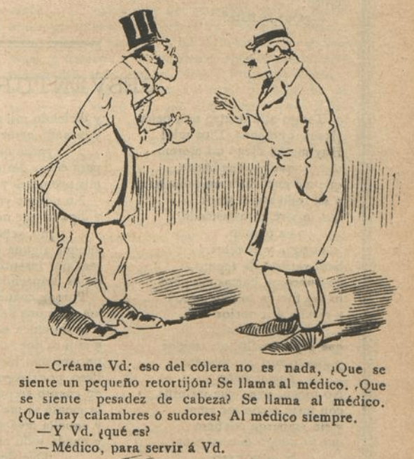 “Believe me: this cholera is nothing. Do you feel a little wooziness? Call the doctor. Headache? Call the doctor. Cramps or sweats? Always to the doctor.”