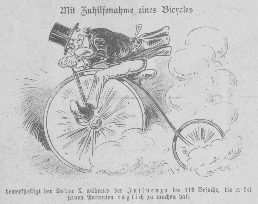With the assistance of a bicycle during the influenza Doctor X managed the 112 visits that he had to make daily to his patients.