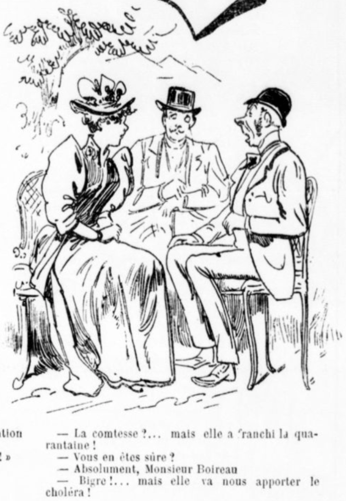 Cholera at the French-Spanish border, to Spanish prime minister Antonio Cánovas del Castillo: “Ah! Are you the boss? Well, I’ll head back. I’m not needed in Spain.”