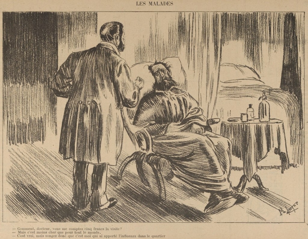“Doctor, how are you charging me five francs for the visit?”