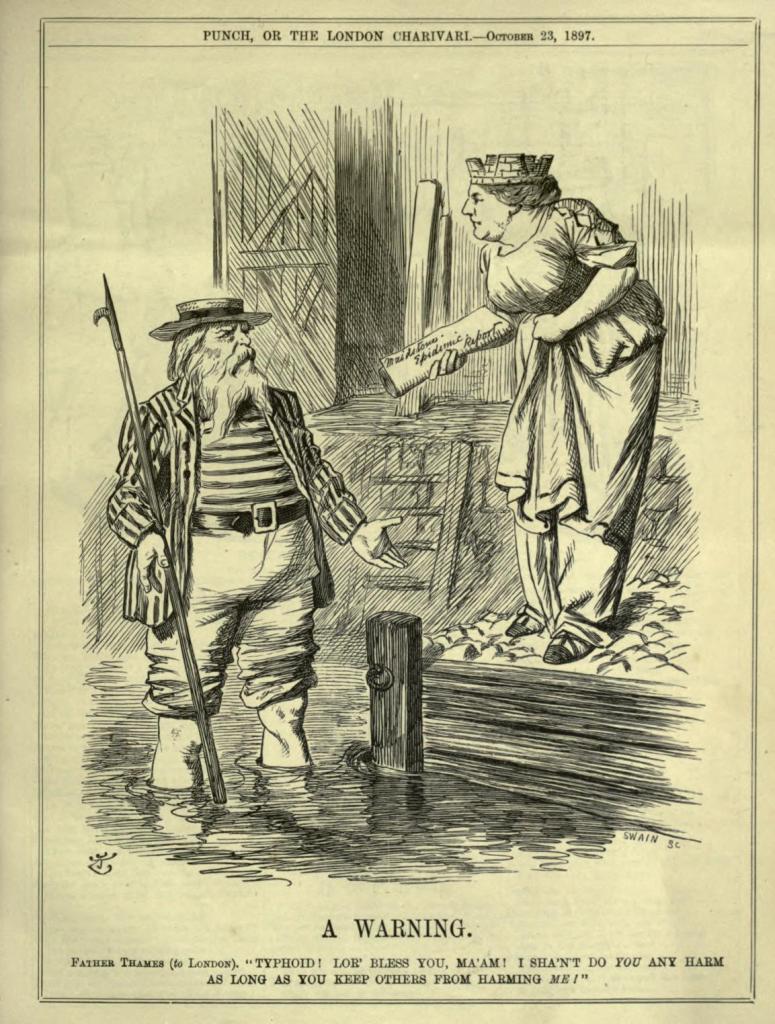 Father Thames (to London): “Typhoid! Lor’ bless you, ma’am! I shan’t do you any harm as long as you keep others from harming me!”