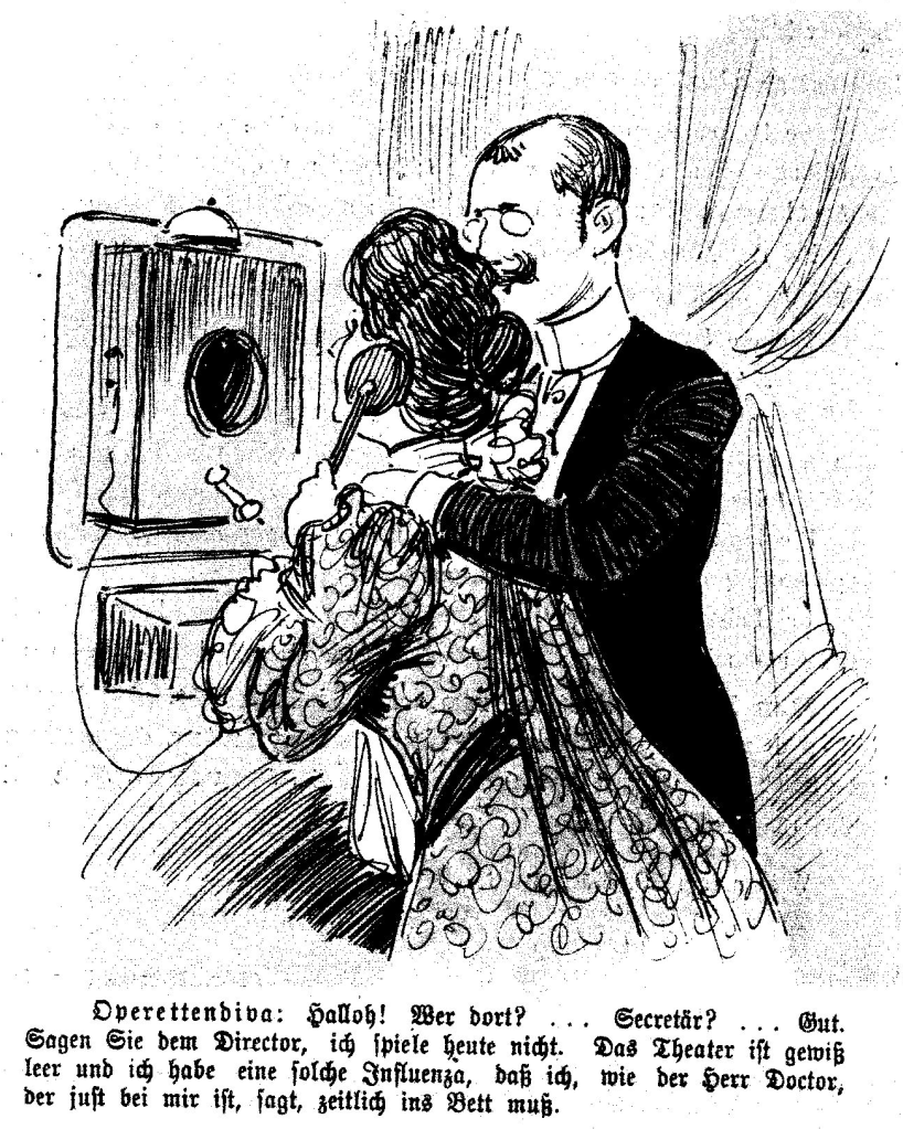 (Der Floh, Vienna, 1899) (See a similar version, albeit with the diva invoking only generic illness, in the Russian magazine Oskolki in 1896.)