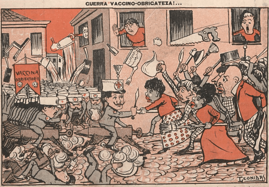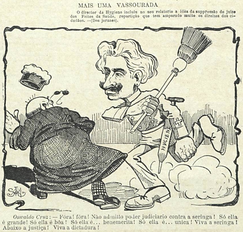 (O Malho, Rio de Janeiro, 1904) (On the complicated politics of obligatory vaccination in Brazil, see also this cartoon.)