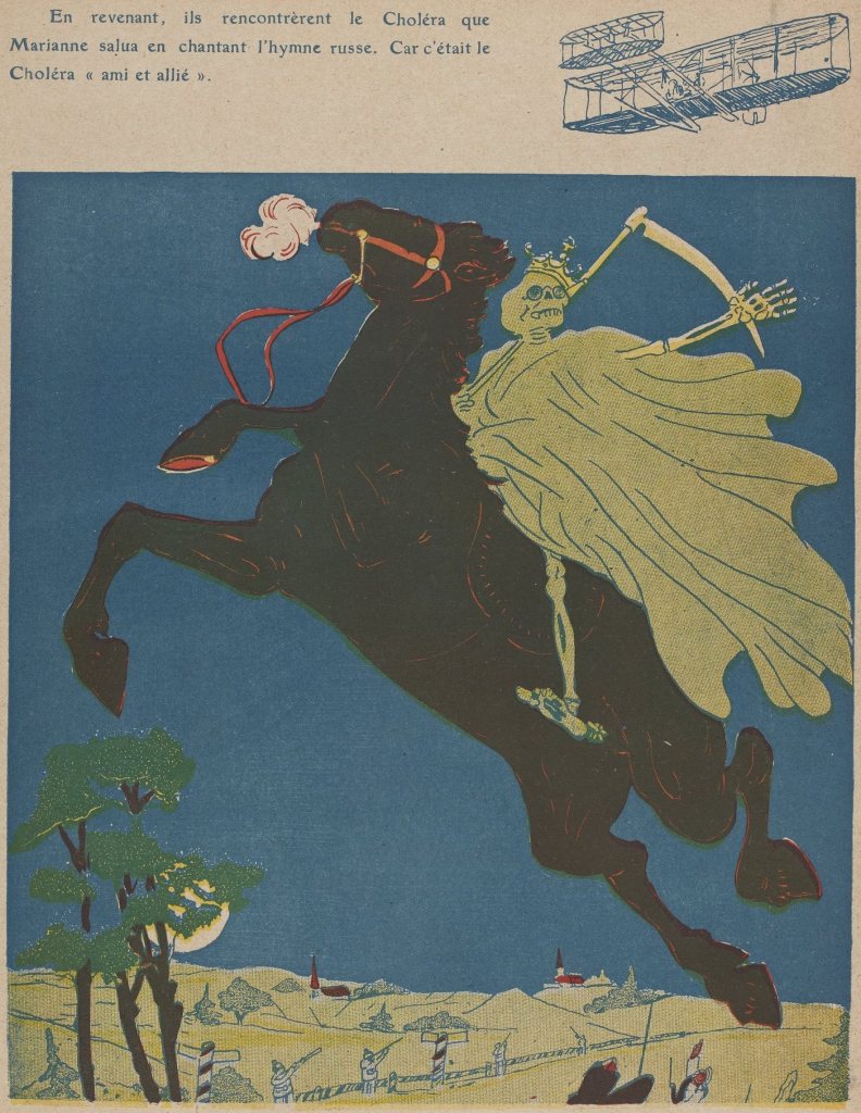 (L’Assiette au beurre, Paris, 1909) (Drawn at a time of close Franco-Russian diplomatic and military relations, in the midst of the last European cholera pandemic.)