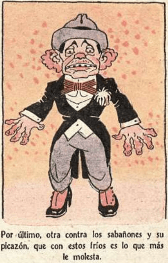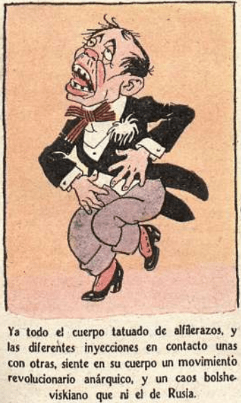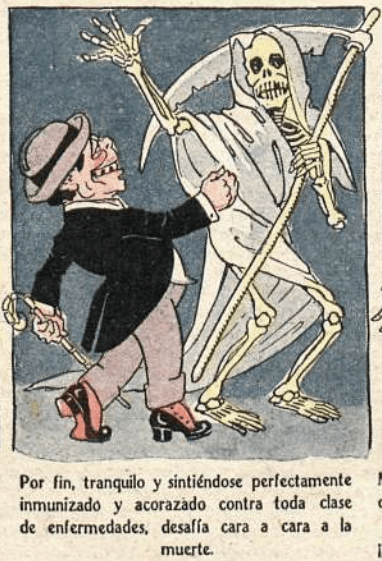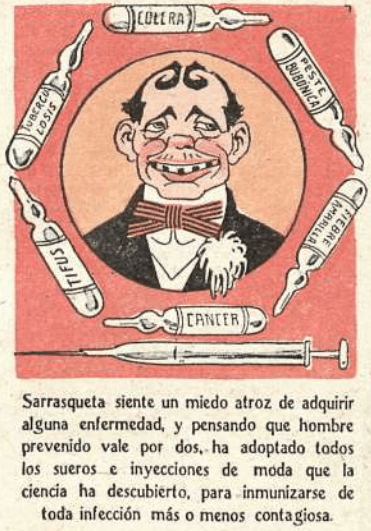 Sarasqueta feels an atrocious fear of acquiring some disease, and thinking that a protected man is worth two, he has adopted all the fashionable serums and injections that science has discovered, to immunize himself from any more or less contagious infection.