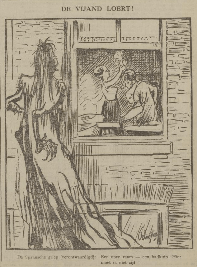 Der neue Tag in Vienna printed a cartoon with a similar theme in 1919, apparently reprinted from a French source: Title: “You have to know how to help yourself” “Just stick close to Grandpa. He has the fever. Perhaps you’ll get warm near him.”
