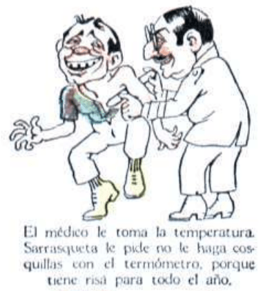The doctor takes his temperature. Sarrasqueta asks him not to tickle him with the thermometer, because he’ll be laughing for the whole year.