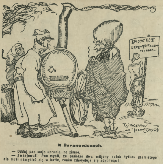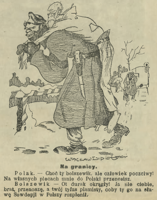 Bolshevik: “Got it backwards, fool! I’m not carrying you, brother, but your typhoid fever, so that you will spread it to the glory of Soviet power in Poland.”