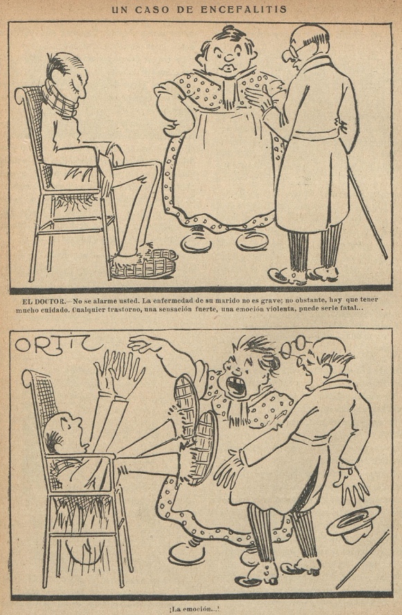 Doctor: “Don’t be alarmed. Your husband’s illness is not serious; however, you have to be very careful. Any disorder, a strong sensation, a violent emotion, can be fatal…”