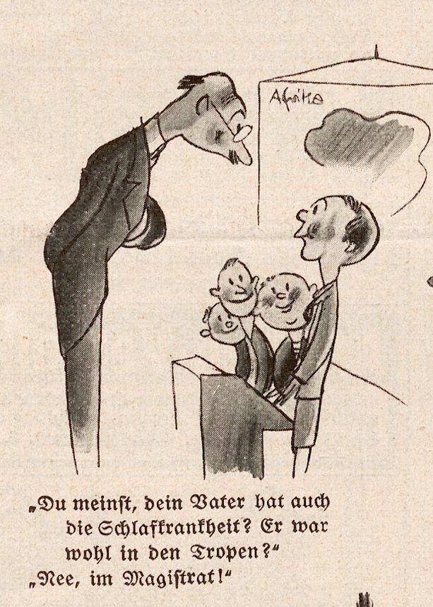 “You mean your father has sleeping sickness, too? Was he in the tropics?”