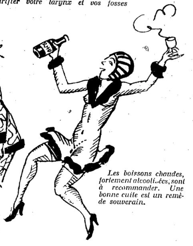 Hot drinks, strongly alcoholic, are recommended. A good meal is a sovereign remedy.