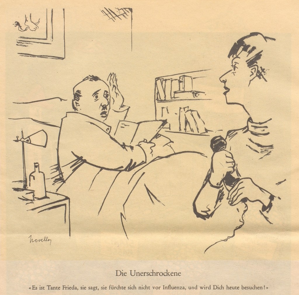 “It’s Aunt Frieda, she says that she’s not afraid of influenza, and she’ll visit you today!”