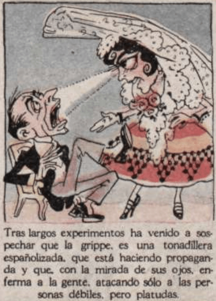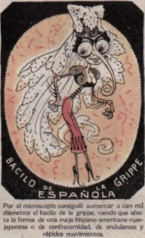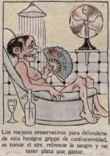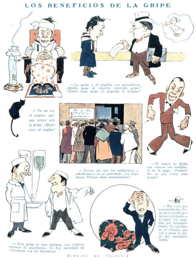 Comic notes sponsored by Glauda Vermouth in Argentina during the flu pandemic of 1918.