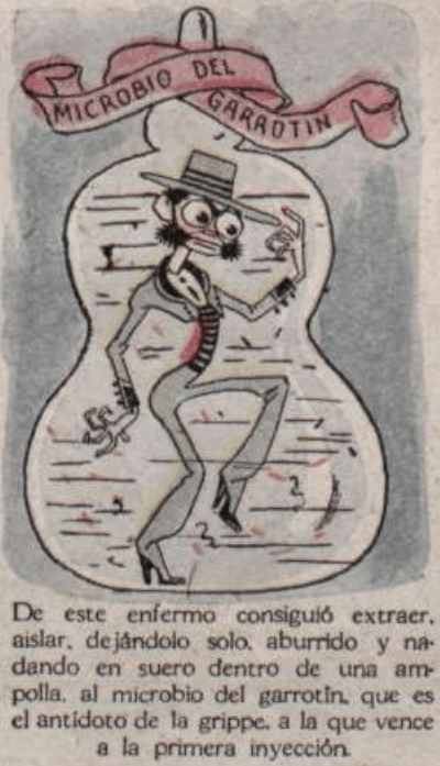 From this patient he managed to extract and isolate the flamenco microbe by leaving him alone, bored and swimming in serum in an ampoule, which is the antidote to the flu, defeating it with a single injection.