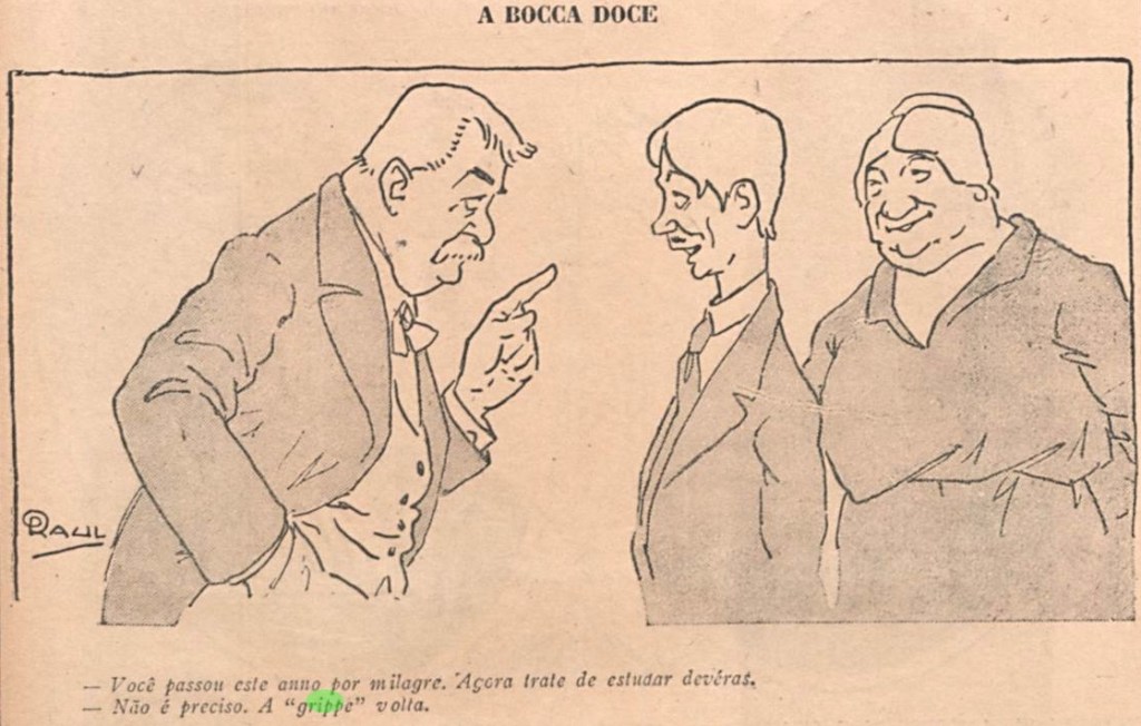 Banishing the demons in this advertisement by Bayer in Rio de Janeiro during the Spanish flu epidemic. “Undoubtedly, modern Medical Science, thanks to its surprising progress, knows how to successfully conjure away these horrible specters…”