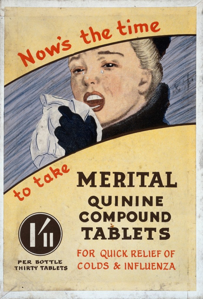 “The metric’s right here,” insists the American President regarding criteria for exiting our physical distancing regimen. A friendly public service reminder not to take medical advice from a TV huckster. (Wellcome Collection) (And see the inimitable Tom Toles’ superior rendering.)