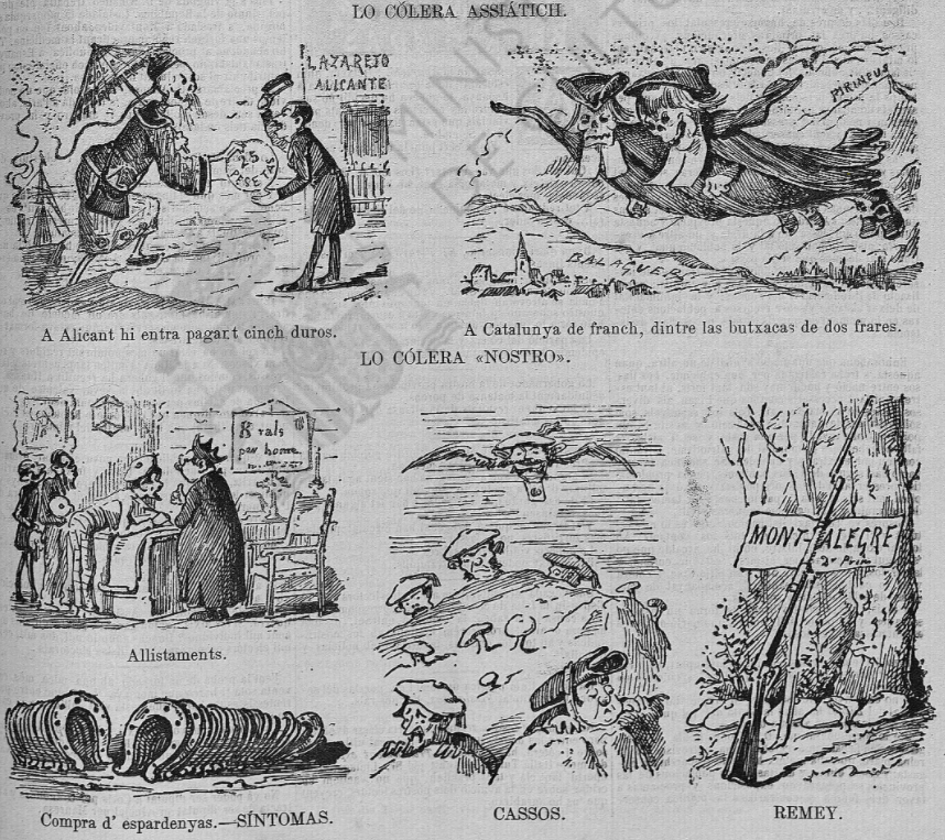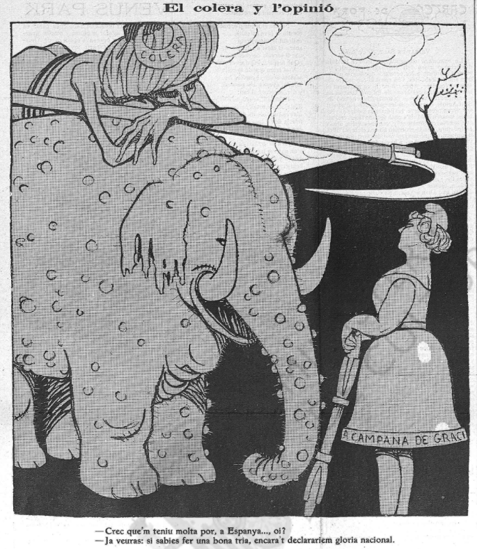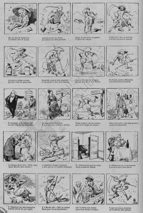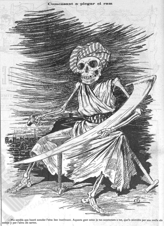 (La Campana de Gracia, Barcelona, 1911) (Note the visual pun on Cholera’s smock, the “comma bacillus.”)