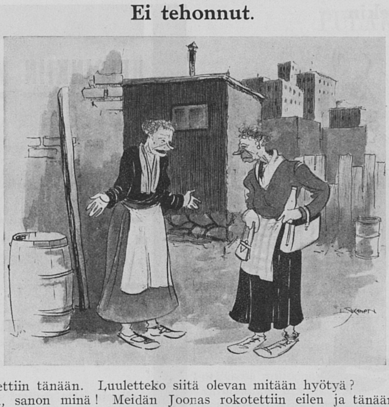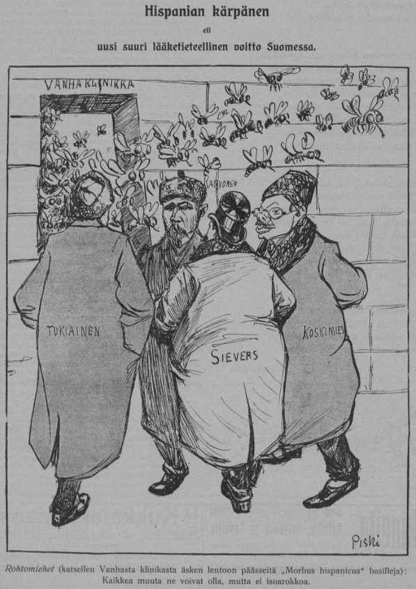 Finnish satirical magazine Tuulispää, 1908. Note the timely fieldwork by the dedicated bacteriologist.