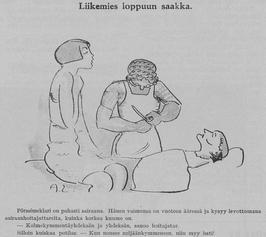 Doctor: “No … but delirium tremens.” (Tuulispää, Finland, 1920)