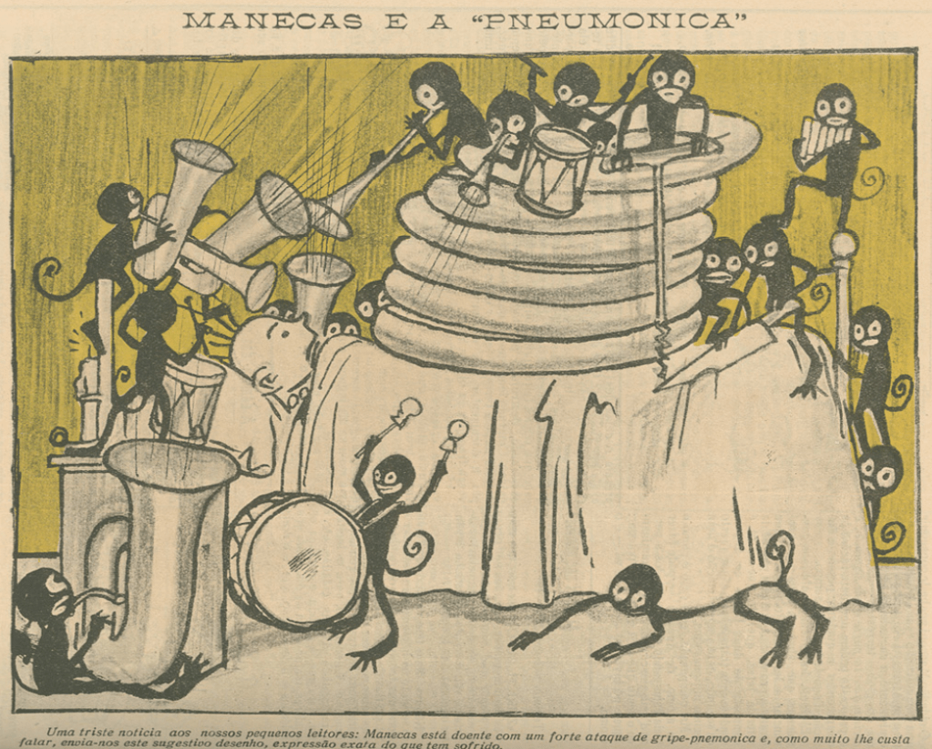 Some sad news for our little readers: Manecas is sick with a severe attack of pneumonia-flu and, since it is very difficult to speak, sends us this suggestive drawing, an exact expression of what he has suffered.
