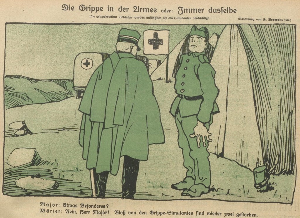 The flu in the army or: Always the same thing. The soldiers sick with flu initially were often suspected of faking it.